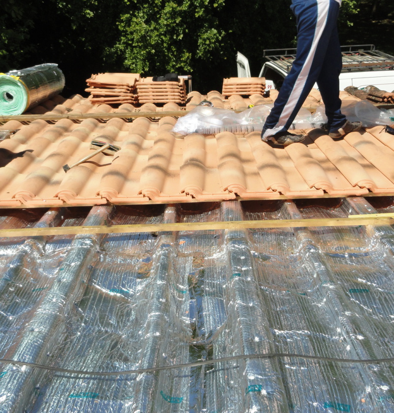 La déperdition de chaleur par la toiture est un phénomène connu de longue date, puisque l’air chaud s’élève naturellement au-dessus de l’air froid. Les méthodes d’isolation de toiture ont beaucoup évolué, et l’on atteint de nos jours des niveaux très élevés de résistance thermique, grâce à l’isolation des rampants. S’il s’agit d’une rénovation, il est très important d’effectuer une analyse de la toiture avant d’entreprendre quoi que ce soit. On doit rechercher et traiter la présence d’insectes dans le bois, ainsi que tout défaut d’étanchéité et de structure. Ensuite, on place des panneau de laine de roche entre chevrons puis un film thermo réflecteur.
